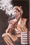 (2008 - 2018)"Jazz" Geraakt en geinspireerd door de relaxte jazz scene in de Verenigde Staten waar de passie en het een zijn van de muzikant met zijn instrument voelbaar is. Uit die verschillende beelden en indrukken componeerde ik de kwetsbaarheid van muzikanten en laat dat tot uiting komen in mij schilderijen.